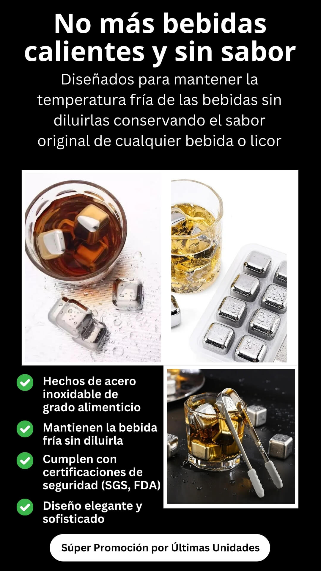 Sí, son perfectos para whisky, vodka, cócteles, vino, café helado y más. También puedes usarlos para enfriar refrescos sin alterar su sabor.