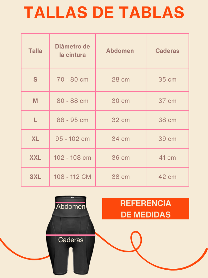 Consulta nuestra tabla de tallas antes de comprar para asegurarte de elegir la talla que mejor se ajuste a tus medidas y te brinde el efecto moldeador deseado.