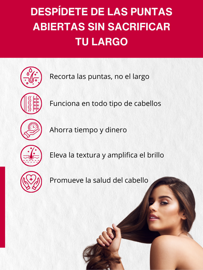 No, su sistema solo elimina las puntas abiertas sin reducir el largo del cabello.